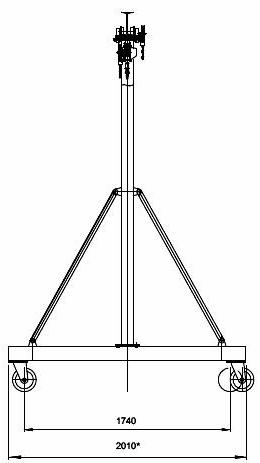 Устройство состоит из тали, балки пролетной, балок опорных, стоек, укосин, колес поворотных с тормозом, которые крепятся между собой стандартными крепежными изделиями.