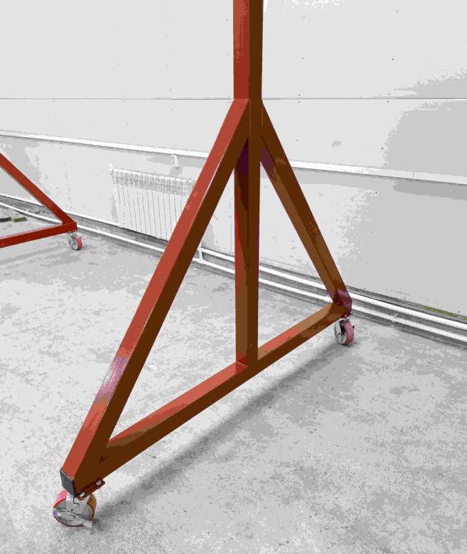 Кран необходимо укомплектовать ручной талью и механизмом передвижения по балке. Возможна также комплектация ручными талями с уменьшенной строительной высотой и электрическими цепными талями. Мобильное погрузочное (перегрузочное) устройство (МПУ) с усиленной конструкцией предназначен для небольших помещений, где не требуется пролет больше двух метров и высота до балки также не более 2,2 м. Колеса d=150 мм - 4 шт, поворотные с тормозом), высота максимальная не более 3,2 м, расстояние между опорами (пролёт рабочий, внутренний) - не менее 3 м, максимальный пролет (габаритный) не более 3,4 м, основание опор - 2,0 м Дополнительные опции:- конструкция ног на болтах +30% к стоимости - конструкция с раскосами + 10% к стоимости Купить и заказать мини-козловой кран передвижной вы можете нажав на кнопку "купить", либо оформив заказ тут. Звоните нам по бесплатной линии 8-800-350-5690 и наши менеджеры ответят на все Ваши вопросы. Похожие товарыТяговое усилие: 0.5 тн * Длина цепи: 9 м * Калибр цепи: 6*18 мм * Масса: 16 кг Г/п: 10 тн * Количество роликов: 2 * Дм ролика: 180 мм * Дм каната: 20 мм * Масса: 47 кг |