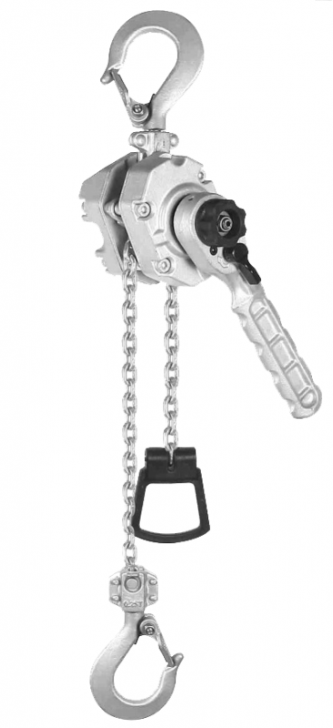Алюминиевая рычажная таль DL-250Алюминиевая рычажная таль DL-250Грузоподъемность: 250 кг Высота подъема: 1,5 м (допускается любая высота по заказу) Калибр цепи: 3,2*9 Вес: 1,6 кг Доп вес 1 м. цепи: 0,15 кг Усилие на рукоятке: 170 Н Габариты: 223*74*105 мм