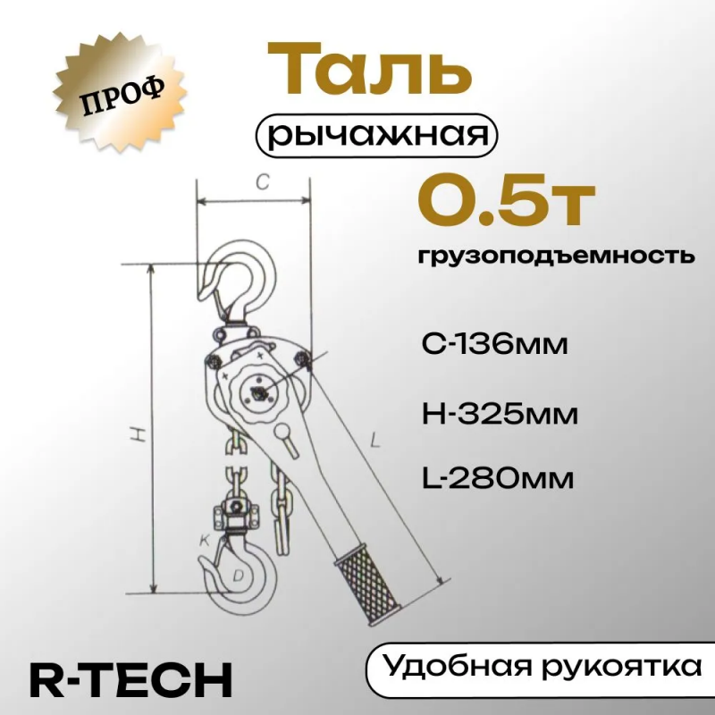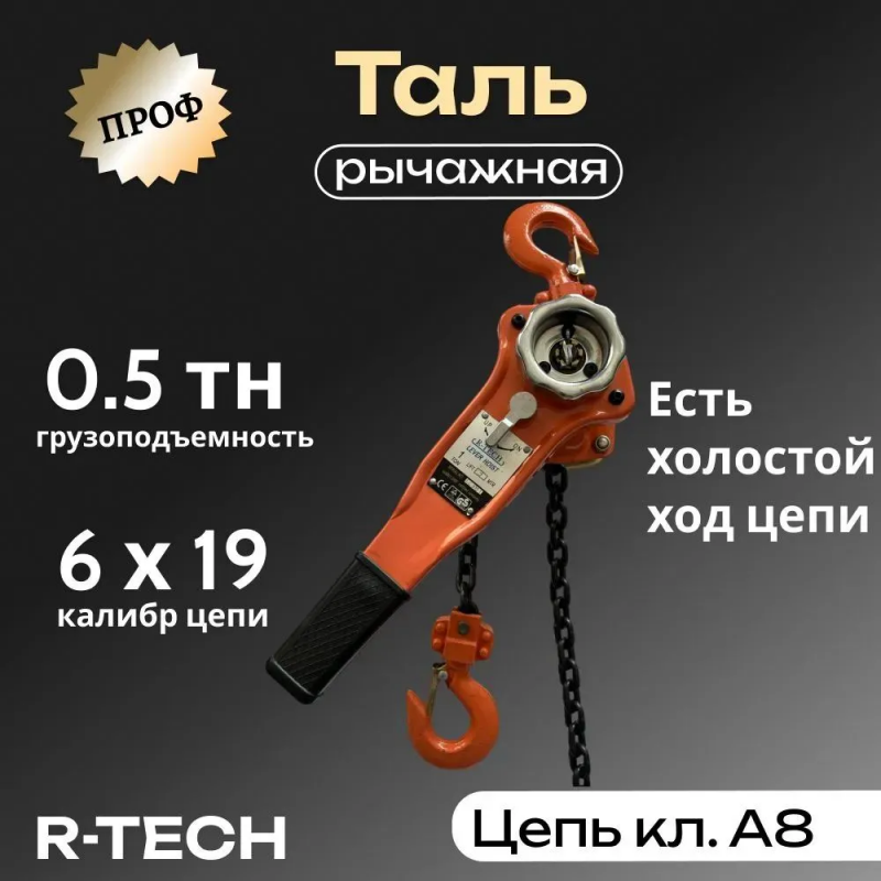 Ручная таль рычажная цепная R-tech (ТРР, ТРШСР, HSH) 0,5 тн 12 м. Купить с доставкой по России и Казахстану. Завод ручных талейТаль рычажная R-Tech 0,5 тн 12мТяговое усилие: 500 кг ПРОФЕССИОНАЛЬНАЯ СЕРИЯ Скачать паспорт на таль рычажную R-Tech Таль ручная рычажная профессиональной серии R-Tech грузоподъемностью 500 кг предназначена для средней и высокой интенсивности работ.